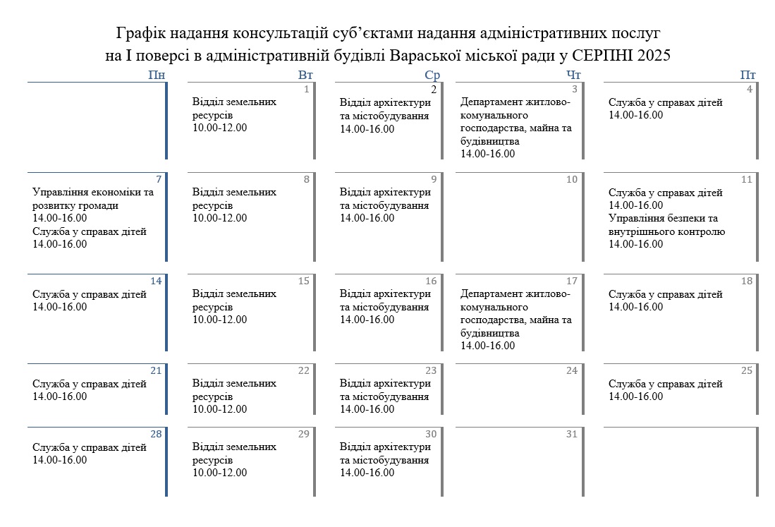 Звертаємо вашу увагу, що у четвер з 17:15 до 20:00 та суботу з 8:00 до 16:00, ЦНАП надає окремі послуги, згідно графіку: