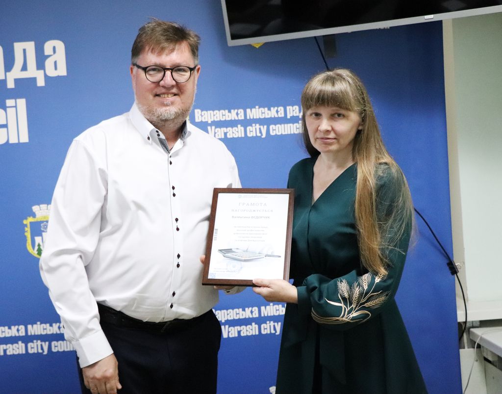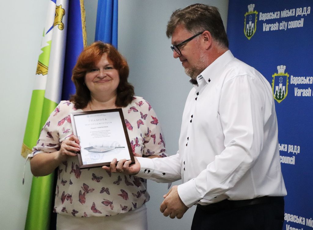 Зокрема, Грамотою виконавчого комітету Вараської міської ради та грошовою винагородою відзначено працівників закладів освіти Вараської громади:
