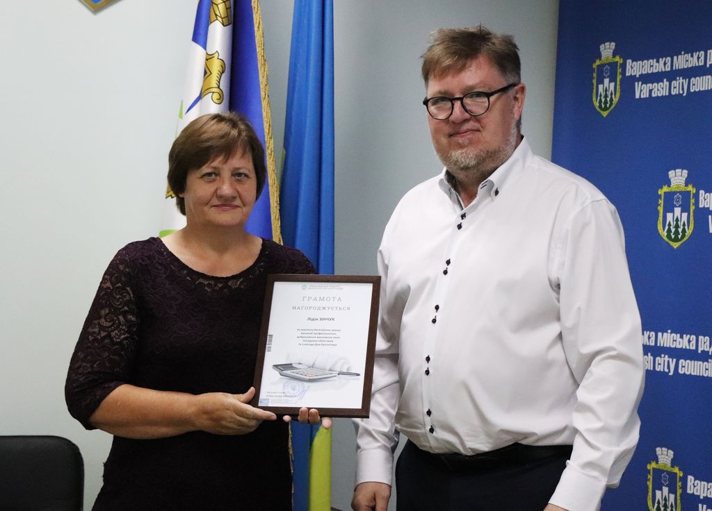 Сьогодні відбулося нагородження бухгалтерів — працівників закладів освіти Вараської громади та працівників закладів культури Департаменту культури, туризму, молоді та спорту виконавчого комітету Вараської міської ради з нагоди професійного свята.
